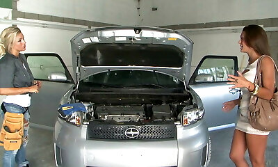 Lesbian babes with nice bushes are curious about drilling