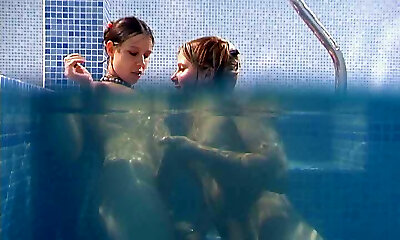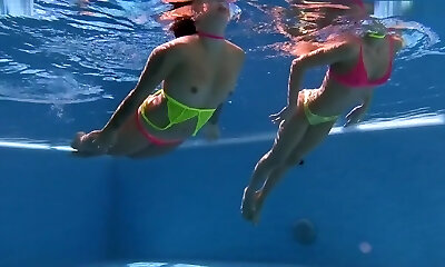 Two sexy teens swimming in the pool like sumptuous mermaids