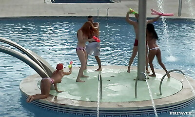 spunky kissing ends in lezzie sex in the swimming pool GGmansion