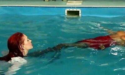 Classy Russian lesbian teen lovin’ swimming in the pool