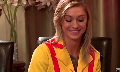 Desperate for the job the blondie offers her body and fingerblasting skills to the dyke boss