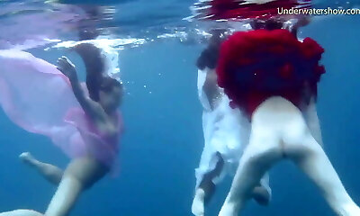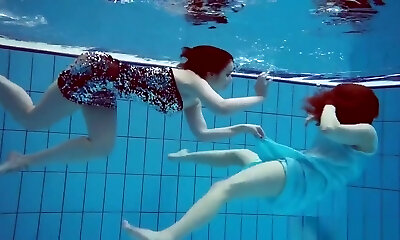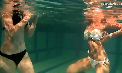 Iva Brizgina and hottie Paulinka swim bare underwater